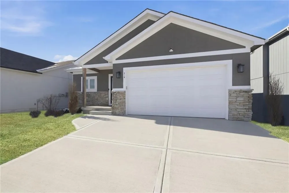 Maintenance provided living at it's BEST! 2 Years young! Inviting, covered front porch. Happy and bright interior! Wide plank, honey-toned, textured Hardwood Floors caress the main floor. Open kitchen featuring Arctic White Quartz counters and island with 5-burner gas range, downdraft hookup ready if desired,soft-close cabinets and drawers, SS appliances, open to dining and great room w/ gas fireplace, Covered Deck, and steps to the yard! Underground fence installed for your sweet pups, or install a fence! Rare options for maintenance provided properties! HUGE Primary Suite with Double Vanity, Ceramic tile shower, potty closet, large walk-in closet conveniently connected to the Laundry Room. 2nd Main Floor Bedroom and full bath! Lower level has media room/rec room and 3rd bedroom & Bath. Two storage largestorage rooms! ALL Stainless Steel Appliances stay and Washer/Dryer! Furniture negotiable! New hot water heater 2025! Vivint security system ready! STUNNING professional landscaping with River Rock beds Lawn care & snow removal included in low monthly HOA Fees of $125/ monthly ($1,500 annually)! Close proximity to shopping, restaurants, parks & recreation, and Smithville Lake! Great access to Hwy 169, 152, and 435! Get to the airport in less than 15 minutes!